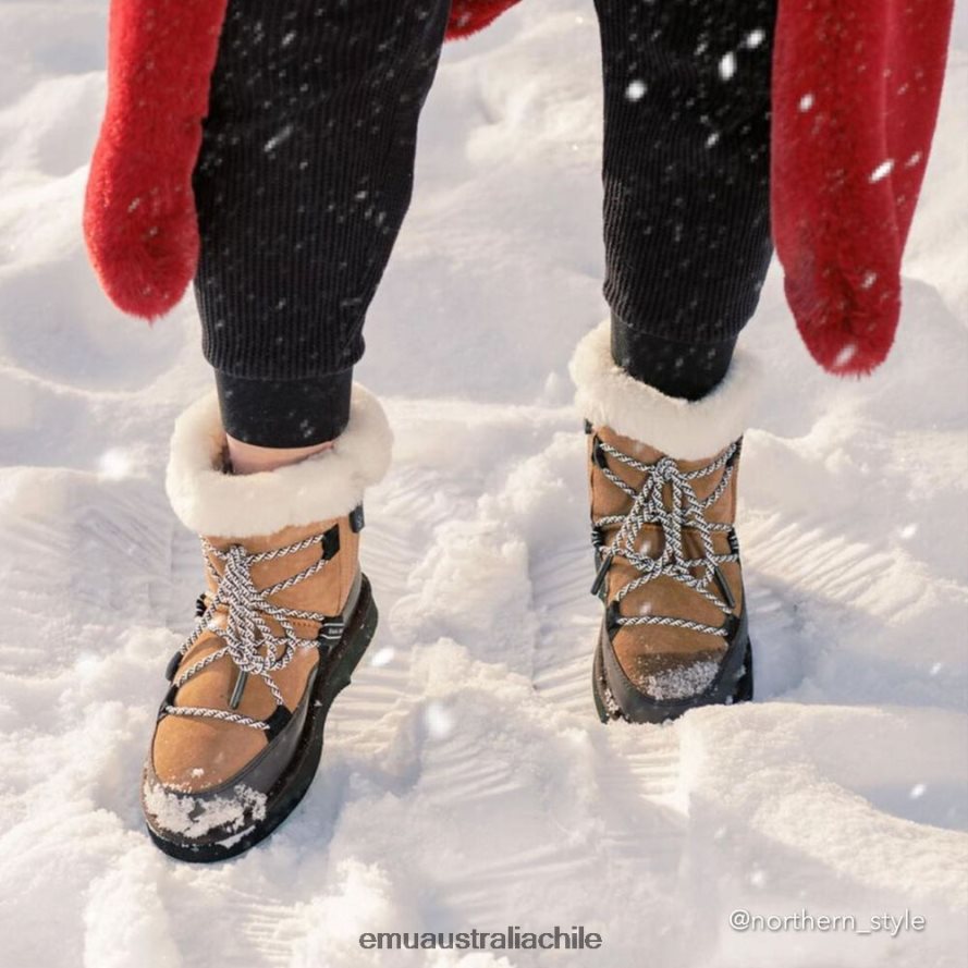 borrosa es una bota de invierno moderna con alta Características tecnológicas que combinan moda y funcionalidad. Está hecho de piel de oveja de doble cara resistente al agua y cuenta con un borde de goma impermeable en la parte inferior del zapato, que brinda protección contra charcos y aguanieve. El forro de piel de oveja australiana ofrece la máxima calidez y elimina la humedad de forma natural. Los cordones estilo excursionista y la cinta con la marca Emu añaden más detalles a estas fabulosas botas. los dientes dentados de "tiburón" en la suela de goma brindan agarre adicional y son icónicos de esta colección.